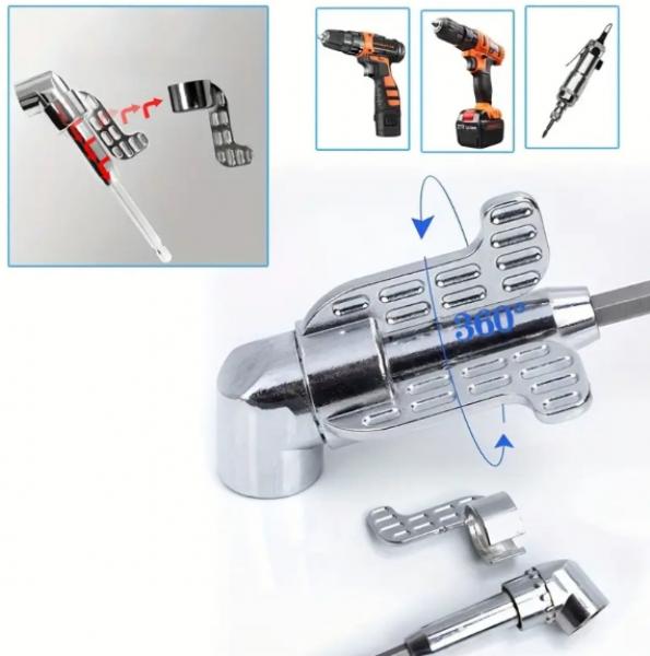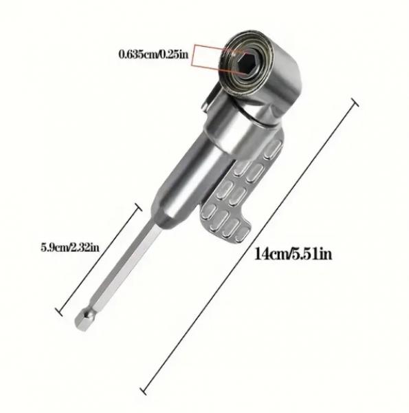 The 360 degree smooth rotating capability of the right angle drill attachment provides a consistent speed and torque output throughout a complete revolution, thus resulting in accurate drilling and precise screw driving. This right angle drill attachment is adaptable to a variety of uses; from woodworking and the is furniture assembly to DIY crafts and auto maintenance. Its compact size makes it an ideal solution for many professionals including electricians, plumbers, carpenters and technicians who have to deal with difficult installation or repair jobs on a daily basis.