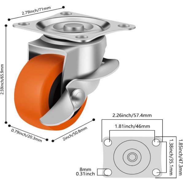 These 4 caster wheels are ideal for a wide range of applications. In addition to providing stability for large furniture pieces, they are also great for providing flexibility to help move smaller items around in tight spaces. All four caster wheels are designed to be able to rotate 360 degrees, allowing you to have total control over your movement when you are maneuvering your furniture or equipment.