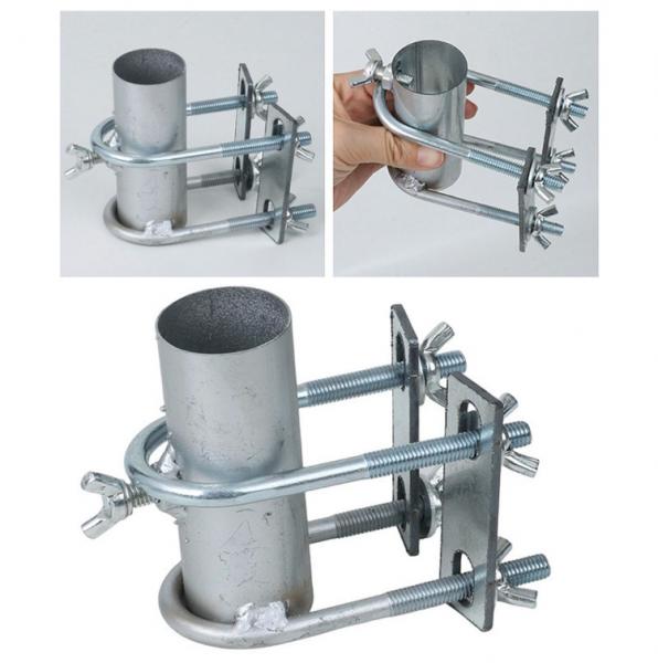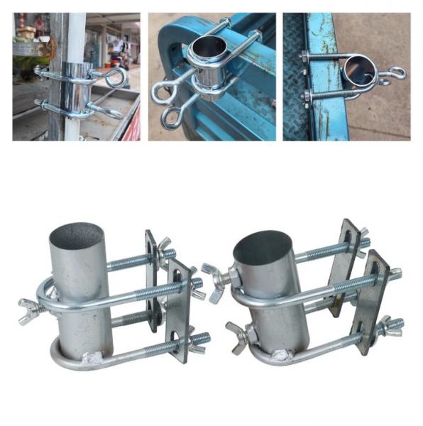 The is Metal Patio Shade Umbrella Stand Clip for Fences and Boats, Courtyards, and Landscapes is a strong and functional mounting system that will securely hold your patio umbrella in place. Perfect for outdoor spaces and this heavy duty metal clip attaches to a variety of mounting surfaces (fences and railings, boat edges, balcony walls, etc.) allowing you to hang your sunshade umbrella without taking up large amounts of floor space using an umbrella base. This item is great for both residential and recreational areas because of its stability, ease of use, and space saving design.
