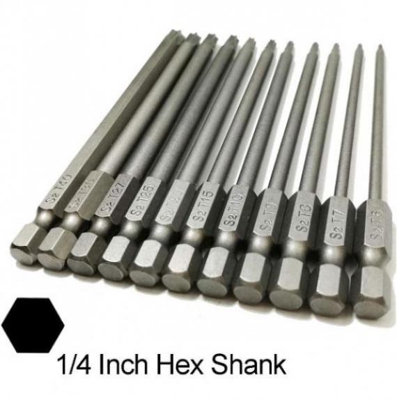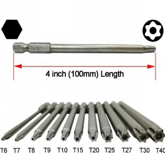 The screwdriver bit set includes all 11 sizes; T6, T7, T8, T9, T10, T15, T20, T25, T27, T30, and T40. So many options will help you to complete practically everything in your life if you encounter Torx security screws; including electronics, machinery, vehicles, furniture, or common project/household work.