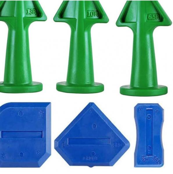 In addition to the nozzle applicator, the kit includes a number of caulk finisher tools to help you shape and smooth the caulk after it is applied. Each of these tools has been manufactured with a different edge profile (round, angle, flat, and concave) so you can use them to form joints that are clean, neat and professional looking. The caulk finisher tools are made from durable, flexible materials that will glide smoothly over most surfaces and won't scratch or damage them. The tools can be used to finish most types of sealants including, but not limited to, silicones, acrylics, latex, grout and others.